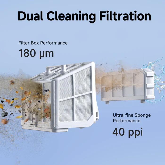 Limpieza integral: limpieza de suelo, paredes, línea de flotación, escalones y pendientes con la tecnología avanzada Freesuction 3.0, adecuada para varios materiales (incluidos los azulejos)